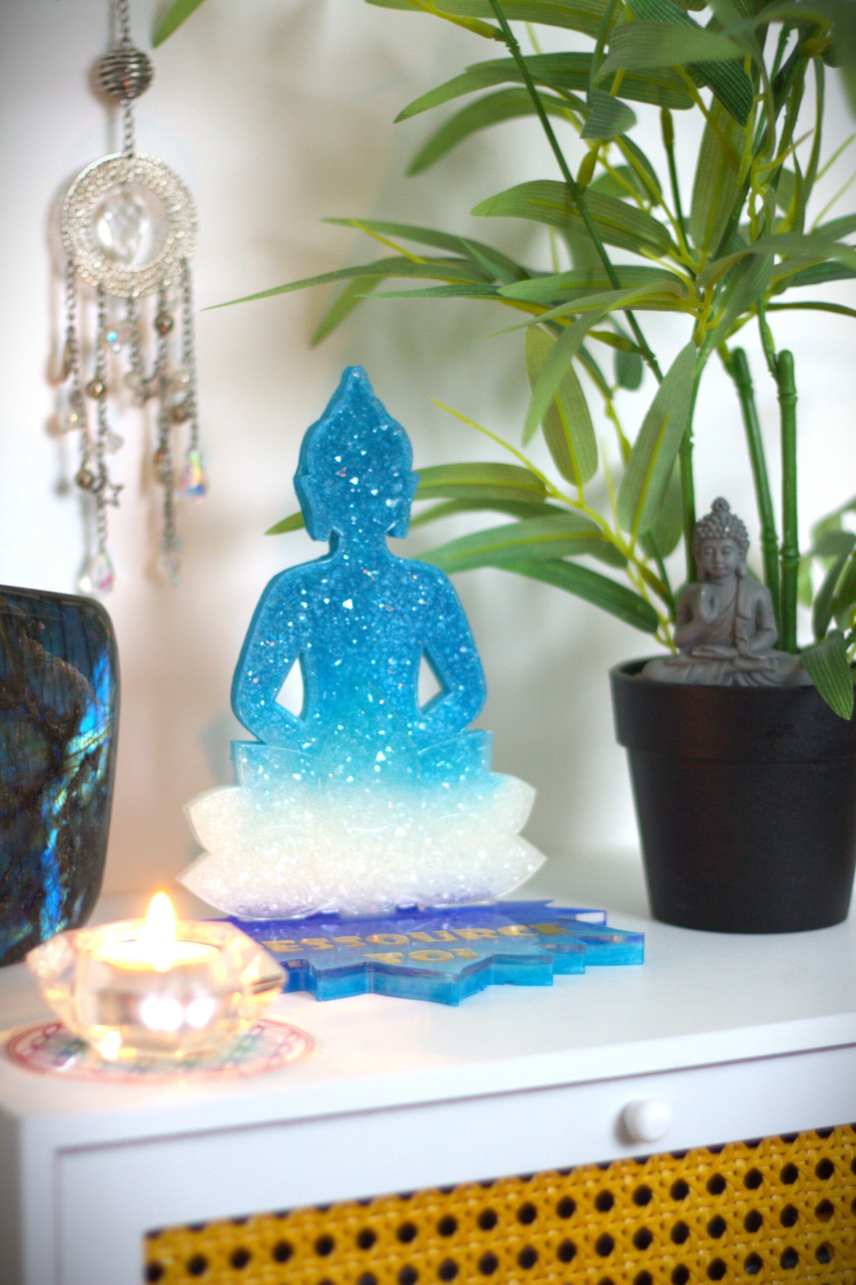Sublime Bouddha effet diamant Blanc et bleu qui rappel la mer, les vacances