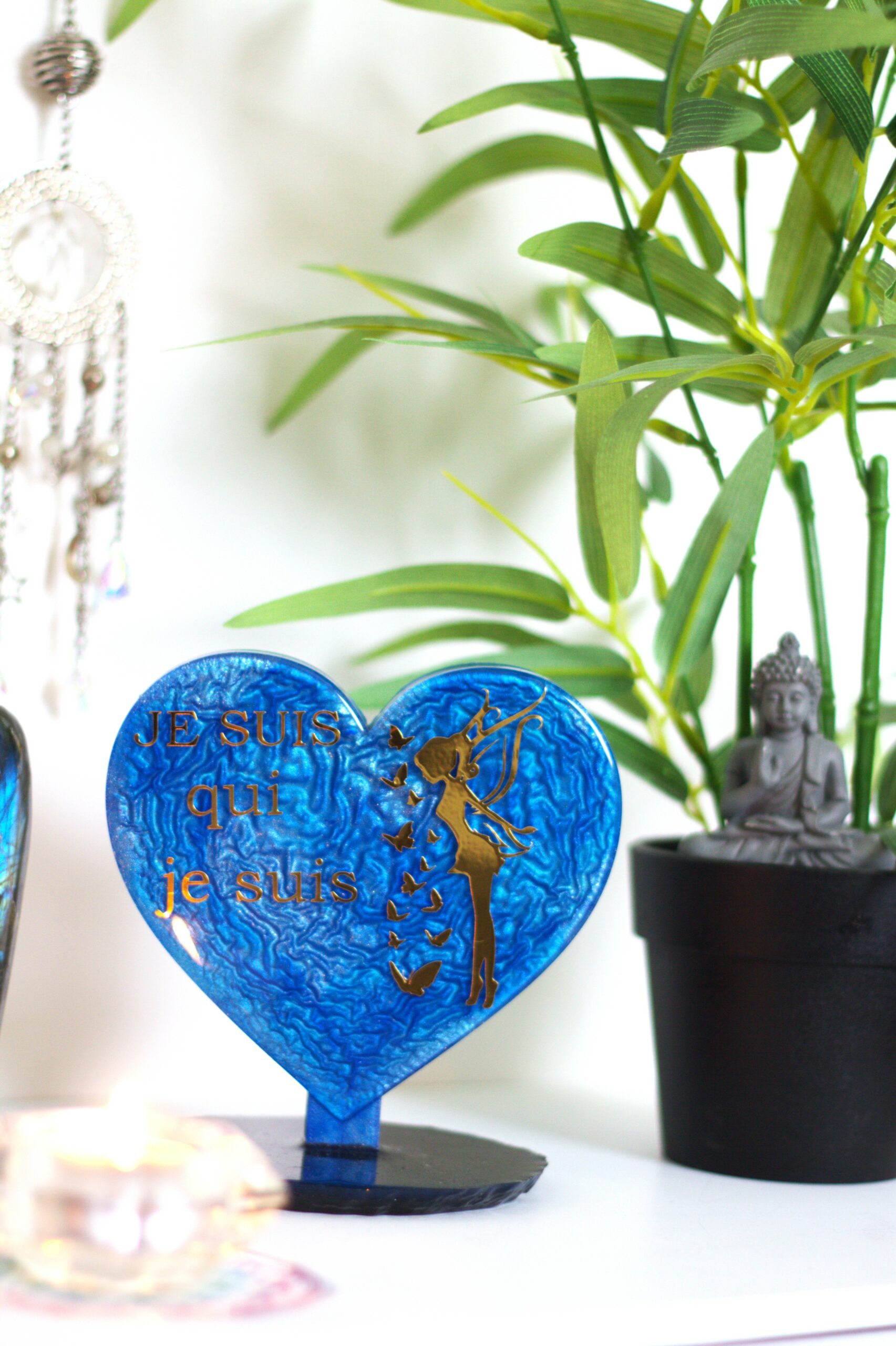 Ce joli cœur brillant est doté d’un magnifique fin dégradé de bleu avec ses vagues qui lui créé un beau relief.